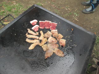 塾の誰かさんが、「何としても一度野生肉を食してみたいものだ」との声に堪えて所望したところ、では「一番の上物をもっていくよ」と言ってくれてた通りで「病みつきになりそう」と云う声が聞こえるほどに、今迄吾輩が食べてきた猪の中でも一番なくらいな絶賛もののイノシシ肉でした。