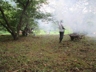 先月例会で皆さんが寄ってたかって割ってくれた大量のヒノキの薪のおかげです。