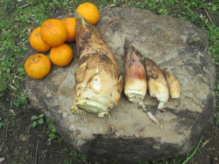 ついに、本日筍の掘り出し数が大台を超えました・・・200筍到達です。 先の例会で食した「タケノコのお吸い物」の旨味が忘れられず、今季にもう一度食べようかの思いで、野ぶき採りと5月22・28・29日に開催予定の「パルシステムの梅もぎハイク イベント」用の資材の搬出等も兼ねてもう1本だけ掘りに行こうかとカミさんと相談していたら、白浜局時代の元同僚が空豆を届けに行くけど都合の良い時間は?の電話が入りました。 ならば、今から筍掘り&野ぶき採りに山に行くから一緒する?と問うたなら・・・「行く!行く!」でもう完璧に飽きたタケノコ掘り・即ゆでの火燃しにポツンと広場へ運搬車でトボトボと登りました。 出のピークを過ぎたが、それでも10本も・・・ついに、今季203本となりました、大幅な記録更新です、つくづくよくぞ掘ったなぁ~感満載です。 |
