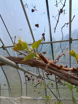 8時過ぎまでは何事もなかったのですが・・・陽があたって暖かくなってきたので正式固定仕事にしかかろうとハウスを観たら・・・見事に風ではがされ片側に寄ってしまっていたのです。