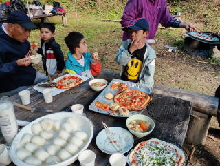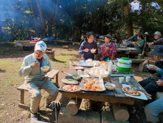 まだ、最低でも卒業予定の2027年3月までの約1年半・・・否 吾輩同様陶芸にはまり込んでいるふしもあるのでこの同期の仲間たちとは長い付き合いになりそうな予感もするので、無下にに断れない気がしたので「OK.! okamoto!のウエルカム」・・・サービスでお昼ランチにpizzaや燻製を御馳走しようではないかと提案したところ、24日の勤労感謝日に同窓仲間を4人引き連れて百姓塾🅿に集まってきました。