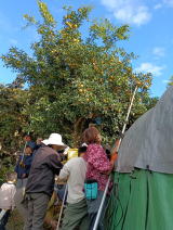 | 楽しさハッピー①:焼きを待つ美ピザの群れ | 楽しさハッピー②:揚げたてアツアツを手づかみがグー | 鈴なりの柚子を寄って・たかって賑やか収穫 | お疲れ気味の大人たちと違ってラストまで元気な子供たち |