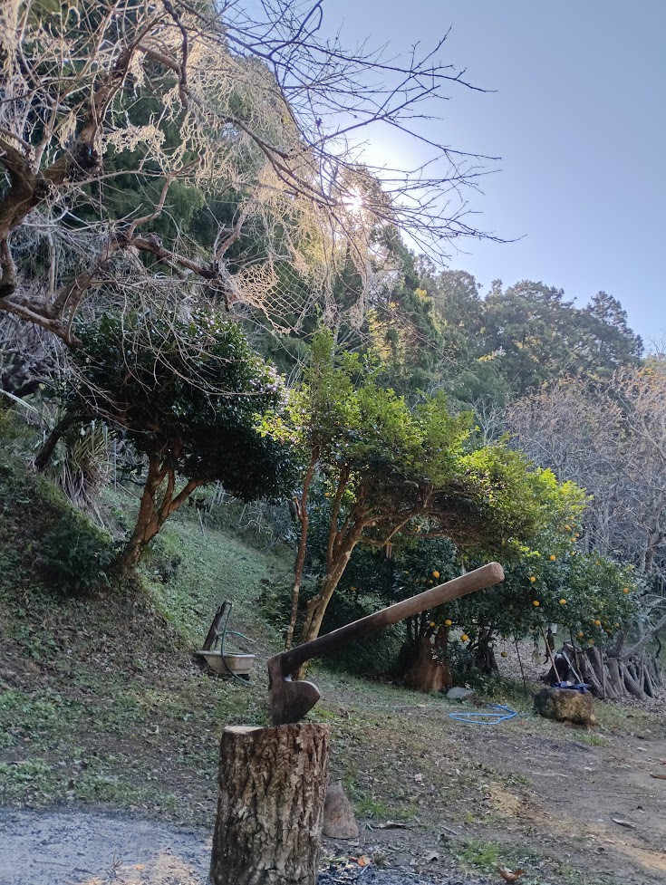 | 柚子の木が半壊・・なぎ倒されていました | チェーンソーのありがたさを再実感 | 暑の火燃し片付け・切り刻んで・燃して燃やす | ブッ太い部分は、皆さんのお楽しみ・・・薪割用に保存 |