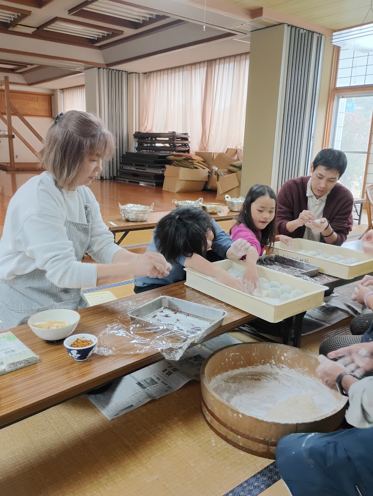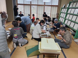 12月餅つき例会 4月の新年度スタート以来の全家参加+OB1家参加の大盛況の12月例会でした。 餅つきと味噌仕込みの月例会は参加者が多い・・・そんな声も聞こえますが、今回も参加者多数な賑やかな集まりでした。 やはり、餅つきは昔の子供たちを含めて人気度が高め? なのでしょうか・・・ トラブル発生で急遽会場変更した滝田区民会館・・・30人弱の大勢での餅つき&ランチクッキングには調理室がやや狭くて窮屈感もありで大変でしたが、無事に過ごせて良かったです。