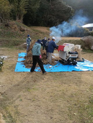 油断していたら、11月の霜月も半分が過ぎていました。 日に日に秋の深まりを感じる今日この頃、、大部寒くなってまいりました。 民生児童委員として任されてる小学生登校時の見守りボランティア活動・・・黄色のジャンパーに横断中の黄色旗で早朝7時過ぎから8時まで小学校正門前の横断歩道を担当しているのですが、よりによって11月中旬の今頃から吾輩の指定立ち位置にあたっていた朝日が前の建物にさえぎられ日陰になってしまいより「寒さ厳しき折・・・」になるのです。 しかし、小学生たちの『おはようございます!』の元気のよい挨拶で気分良い朝エネルギーがいただけてます。 しかも、、季節は冷涼な初冬になってるのに、半袖&半ズボンの夏スタイルで登校してくる生徒が数人おりその姿が視界に入ってくるだけで背筋が伸びる気がします。 防寒スタイルの子よりも元気ハツラツ・・・見てる方が風邪をひきそうですが、こんな子の方が身心ともに健康的で丈夫に育ってくれそうな気がします。 そんなんで・なんだかんだで、今年も残り1ヶ月半・・・月日の流れがスピード違反気味に過ぎてます、そろそろ年賀状を準備せねばデス。 そんな日が短くなってきた秋の一日、皆さん月例会ご苦労様でした。 5月例会の参加者28人以来、久しぶりに参加者が20人超えとなりました。 今季は雨にたたられて順延したり御多忙な方が多くて、少なめで推移してましたが・・・やはり大勢で賑やかに秋の一日が過ごせて良かったです。 とくに、今月は、玉葱の植え付けやサツマイモ堀り&今年も百姓塾応援団さんから鈴なりの「柚子収穫」を提供いただき、更にハウスの屋根部分ビニール張り等のポツンと広場から降りてからの作業が多くあったので、山での作業を変更して「シイタケの榾木づくり」&「イガ燃し」で過ごし、賑やかなランチタイムも早めに過ごしての移動となりました。 平地での作業も、とりわけハウスのビニールの張り替え・・・前日、黒川さんと古ビニールをはがしておいた&大勢でしかかったので想定以上に今までになく順調に伸ばし張れて、いつも以上に多めのパッカーでの仮止めまで出来てバンバンザイで本日の被覆スプリングでのビニールの固定やマイカー線での重複固定に備えられました。 |