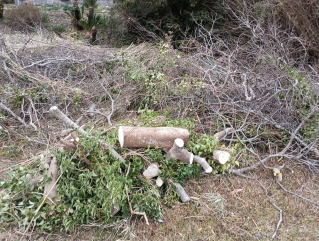 硬い堅いマテバシイ故に、段々太くなる幹の部分になってくるとチェーンソーも切れが悪くなり・・・苦しみもがいてる様子となり、途中で刃を研磨せざるを得ないような有様でした。