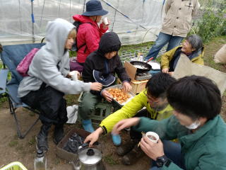 こどもの日の今月のランチ・・・ですが。 ウインナーロールパンの美味しさががかなり好評の焼き上がりでした。 パン焼き職人さん達の職人技が確実に・抜群に向上してきてます。 ポツンと広場の石窯でのパン焼きも4~5回目(?)、寒さで予定通りに発酵しなかったり、硬くパンよりもクッキーのようになったこともありで、失敗多くあったパン焼き・・・そんな事の苦労と工夫の積み重ねもあって・・・・今回は絶品のロールパンでした。 心配で・不安で・興奮して、外が明るくなり始めのころに目覚め・寝ていられず、発酵がうまくいくように「美味しくなれ!美味しくなれ!」と念を込めて念入りに捏ねたパン生地の中種づくりをした甲斐というものがありました。 振り返れば、余ったピザ焼き用のウインナを「ロールパンにはさんでみてもイイ?」という伊崎ママのアイデアから始まったウインナー入りロールパン・・・こんなにおしいパンになってくれるとは・・・デス。 吾輩が以前ちょこっと勤めていた南房総館山の地元民に愛され続けている「パンといえば なかぱん」のロールパンと比べても遜色ない、どころか焼きたてのホカホカ感が味わえる分『旨さは超えた (あくまでも、個人の感想というやつですが)』ですネ。 そして、今月は、山での作業がほとんどない、But 時期的に野菜たちの収穫やの植え付けに大わらわする時期なので、早めに、山から畑に移動して手分けして農作業に励んでいただきました。 継続(留年?)ファミリーも多い今年度、畑作業もだいぶ手馴れてきた感もありの数は力なりもあって、玉ねぎの収穫・保存、さつま芋の植え付け、青ナスの植え付け+風よけのあんどん、生姜植え、各家別ゴボウの簡易栽培にと先輩たちのアドバイスもよろしく、吾輩が想定していたよりもかなり手順もよろしく捗りました。 、 みなさんごくろうさまでした・・・帰路の大渋滞での帰路のご苦労も含めまして、お疲れさまでした。 |