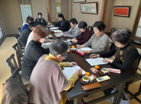 奥の間、お茶が入り学習会