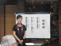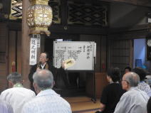 ![]() お盆のいわれを説明した後、「阿弥陀様はすべての人を救って下さいます!」 |