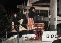 ![]() 元旦会、喚鐘が鳴り住職、前住職、 中山法務員が入堂 |
