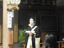 ![]() 住職挨拶では法務員、中山大悟氏が紹介される |