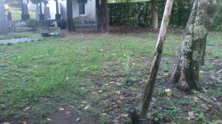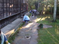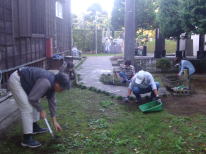 ![]() 参道の入口も、また反対側の苑の隅は機械で雑草を刈りました |