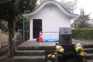 ![]() 分骨壺を納めた納骨堂に安置、今秋の 工事完了の日までここで保管されます |