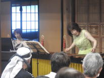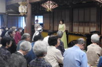![]() 「マリンバの奏者は会の創立メンバーであった磯先生の娘さんです」 と会長が紹介 |