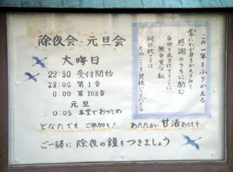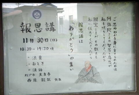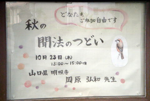 ![]() 門前の掲示板:四季折々、法語又は行事の案内が掲示されます。 |