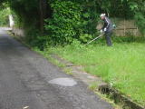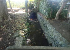 ![]() 本堂前の天水鉢、空にして清掃し注水する |