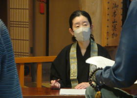 お茶が入る間に、新たなお寺のスタッフ、住職の姉が紹介される |