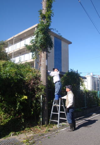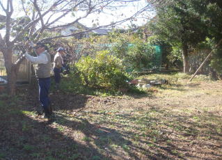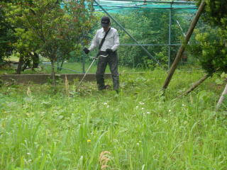 ![]() 徒長した枝を選定し、草は手作業でむしる |