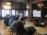 ![]() 報恩講支援の役割を決める。昼食は 中止、軽食が配られる |